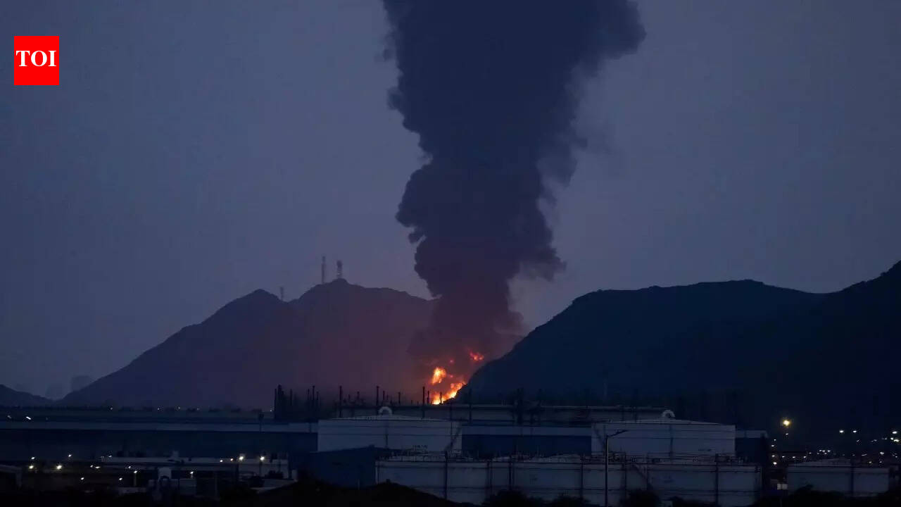 UAE मधील फुजैराह ऑइल टर्मिनलवर श्रापनल पडल्याने आग लागली. (एपी)